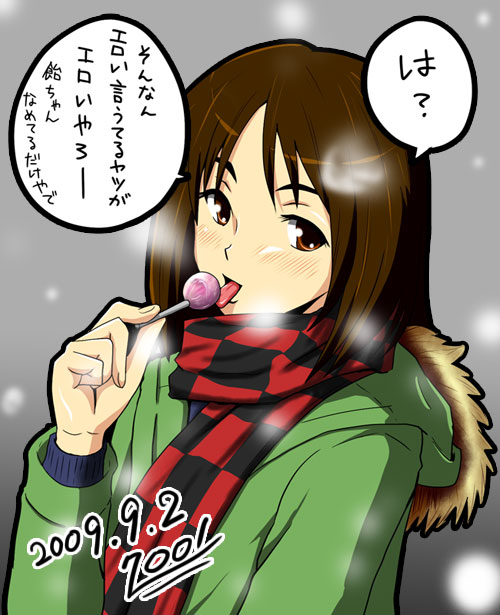 設定上、飴をよく舐めているキャラということで描いたんですけど、描き様によってはエロイなぁ大阪さん、なんて思ってついやった。反省はし(ry
